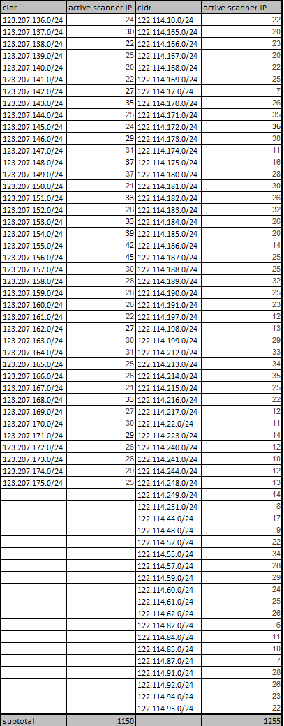 前面提到一次性动员的 2400+ 个主机IP地址包括: