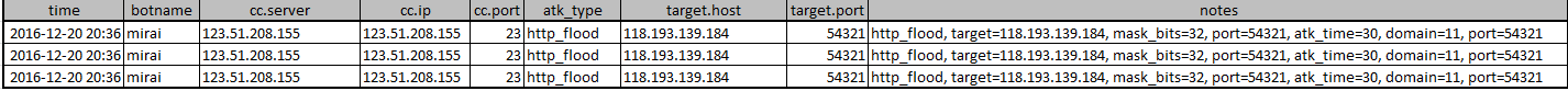 我们追溯到该C2发出的第一条攻击指令,是在2016-12-20发出的。