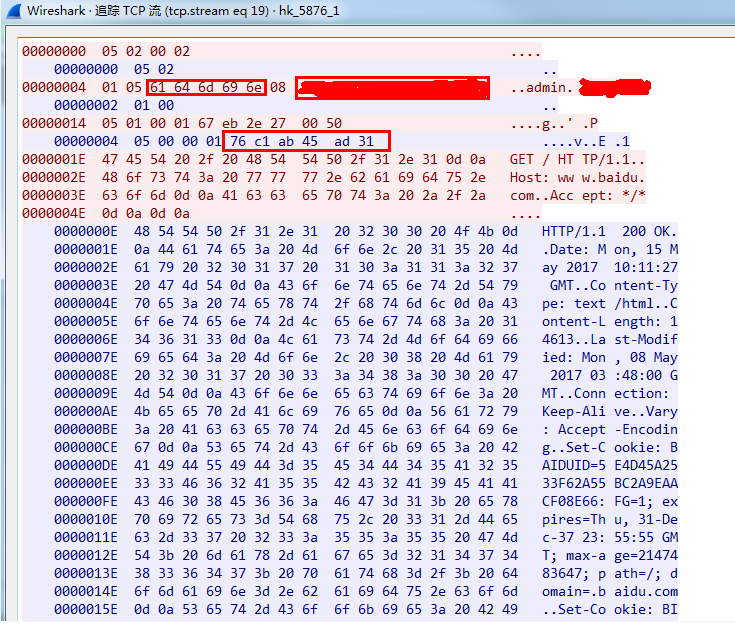 为了确认上述proxy 网络会被利用,我们模拟了一个 bot 向 botnet.2.proxy C2 提供了一个密码。之后,botnet.2.proxy 向我们模拟的 bot 发出测试请求,要求利用 proxy 获取www.baidu.com 网页。